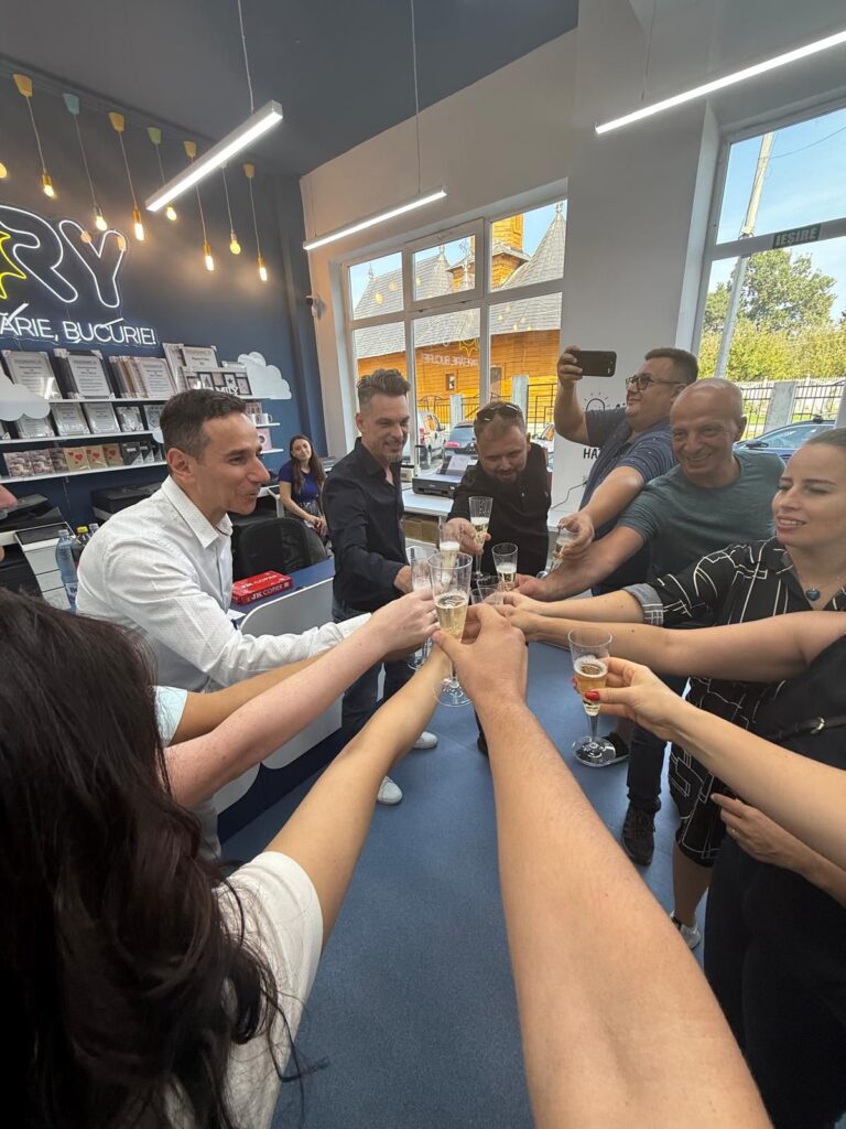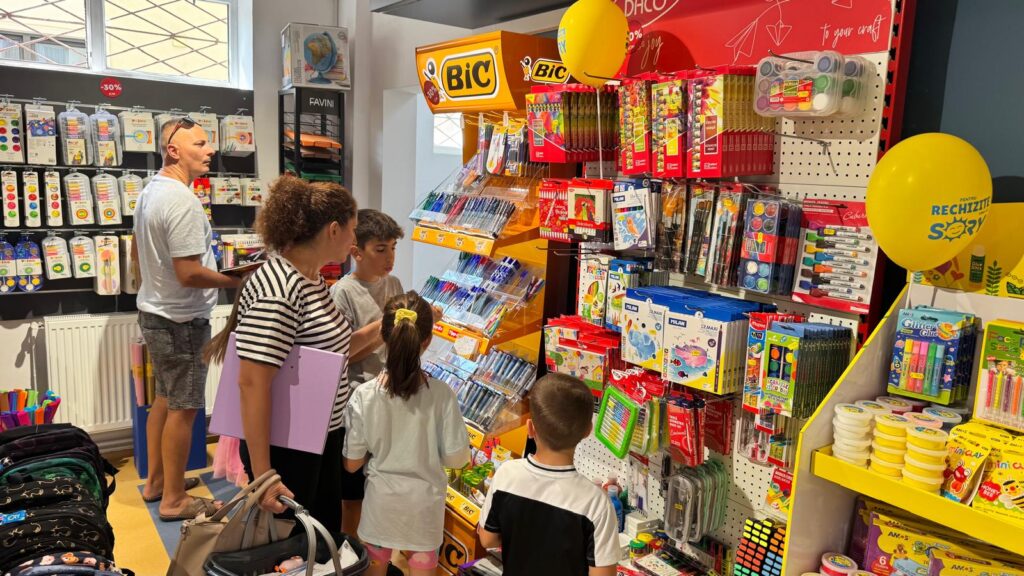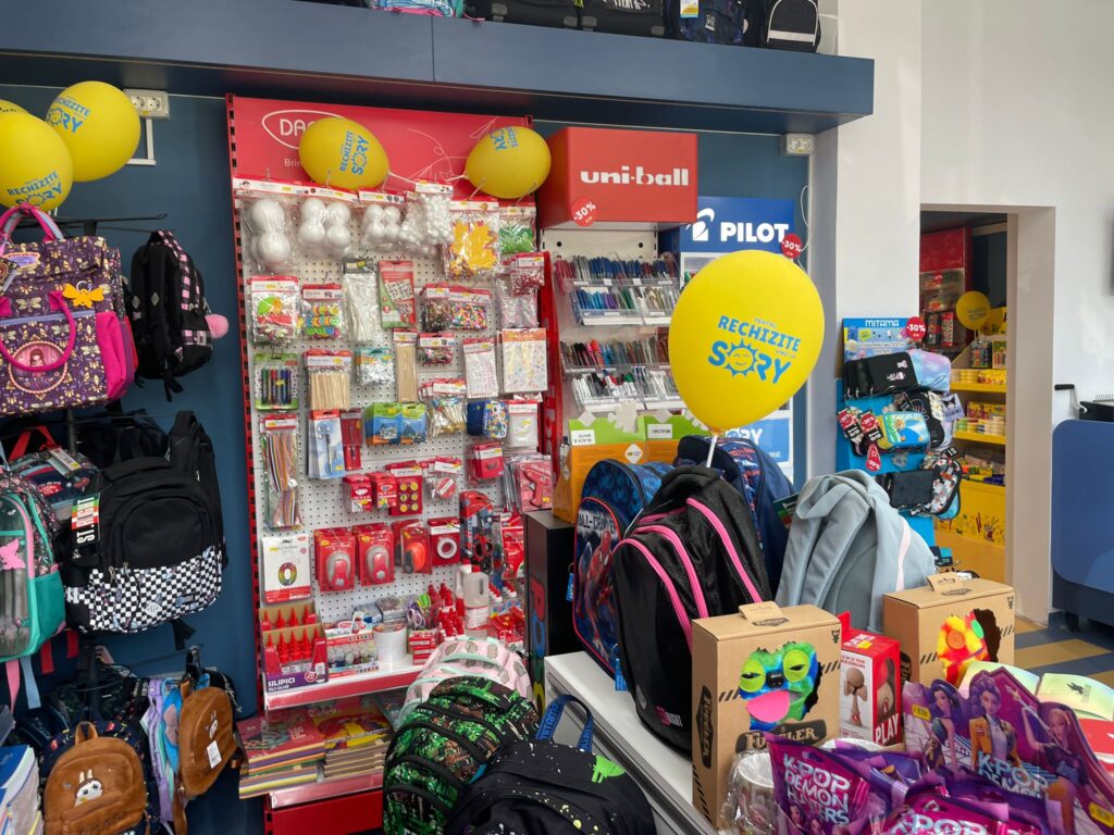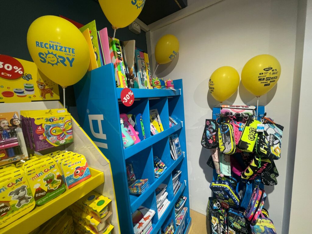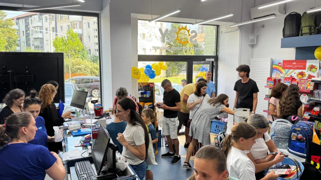 Ziua de astăzi a fost marcată de o atmosferă de sărbătoare, cei prezenți s-au bucurat atât de produse cât și de gustările și prăjiturile oferite din partea echipei. Toți clienții care au trecut pragul magazinului au beneficiat de reduceri de până la 50% la produse variate, de la ghiozdane și rechizite, până la jucării, inclusiv celebra jucărie „La Bubu”, caiete, produse de papetărie și multe alte produse la prețuri accesibile pentru toate buzunarele.