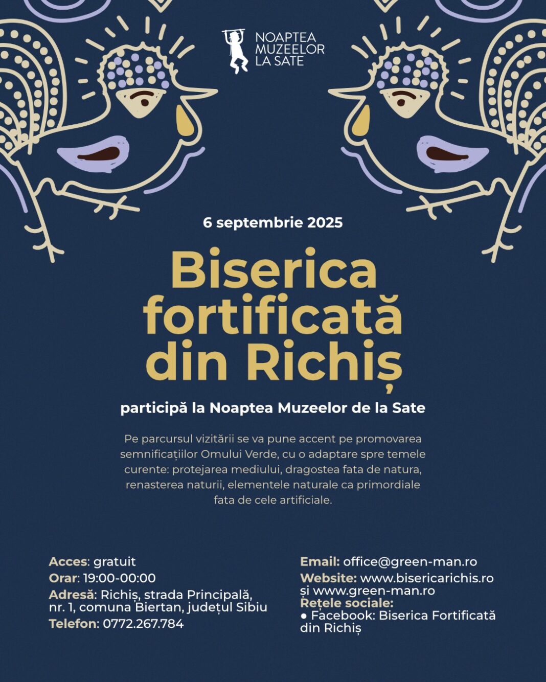 Vizitatorii sunt invitați să descopere acest monument de patrimoniu și să participe la tururi ghidate susținute de Adela Diță, membru al comisiei de cercetare „Omul Verde” din cadrul Academiei Templare din Roma, secțiunea Transilvania. În cadrul acestora, vor fi prezentate povești despre Omul Verde din Richiș și despre cultura celtică.