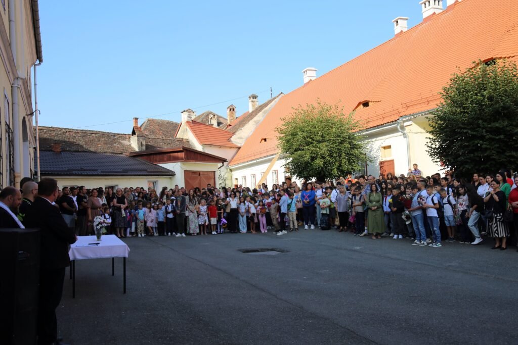 Curtea Liceului Teoretic „Gustav Gündisch” din Cisnădie s-a umplut luni dimineață de emoții, zâmbete și flori. Cei mai mici dintre elevi, din clasa pregătitoare, au pășit pentru prima dată pragul școlii, ținându-și strâns părinții de mână și buchetele în brațe. Pentru elevii mai mari, revederea colegilor și a profesorilor a adus bucuria începuturilor, iar pentru cei de clasa a IX-a emoția trecerii pragului liceului s-a citit în priviri.