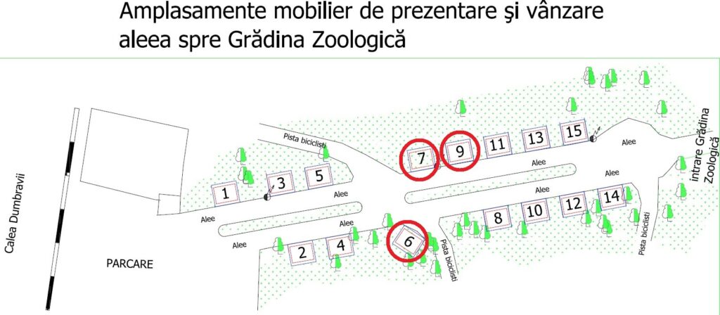 - 3 standuri de 12 mp fiecare, situate pe aleea principală de acces în Grădina Zoologică Sibiu, destinate comercializării produselor alimentare sau nealimentare. Prețul minim al chiriei va fi de 5.256 lei / an / stand.