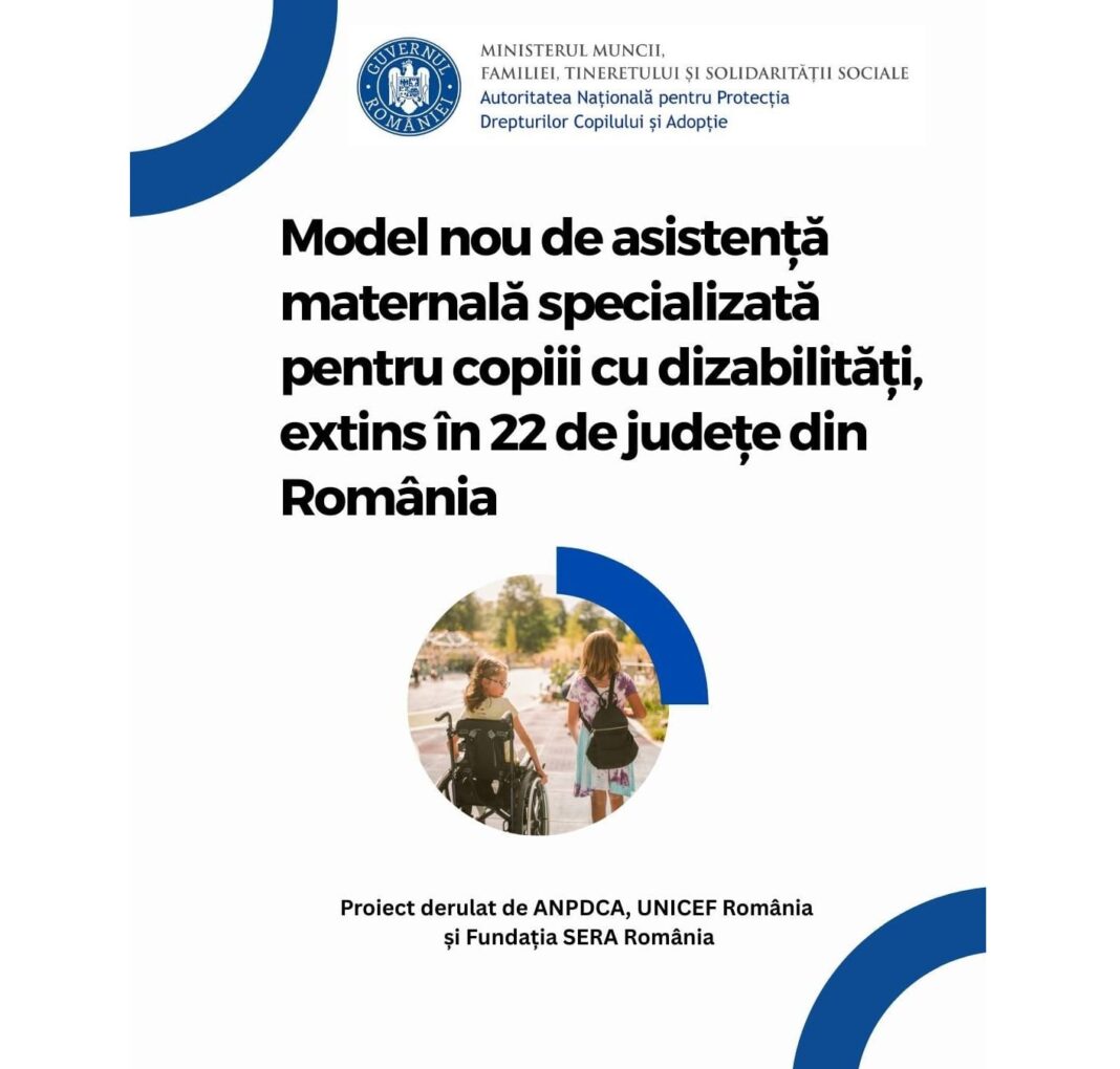 Autoritatea Națională pentru Protecția Drepturilor Copilului și Adopție, împreună cu UNICEF România și SERA România, a semnat un memorandum pentru implementarea proiectului „Dezvoltarea și pilotarea unui model de asistență maternală specializată pentru copii cu dizabilități”. Inițiativa, cu o durată de doi ani, urmărește crearea unui cadru conceptual și operațional solid, care să includă analize de situație, cursuri de formare specializată și metodologii inovatoare pentru asistenții maternali.