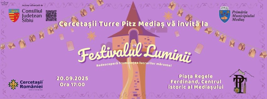 De la ora 17, Piața Regele Ferdinand I va prinde viață la „Festivalul Luminii”, organizat de cercetașii din cadrul Centrului Local „Turre Pitz” Mediaș. Evenimentul promite o seară plină de lumină, voie bună și surprize pentru cei prezenți.