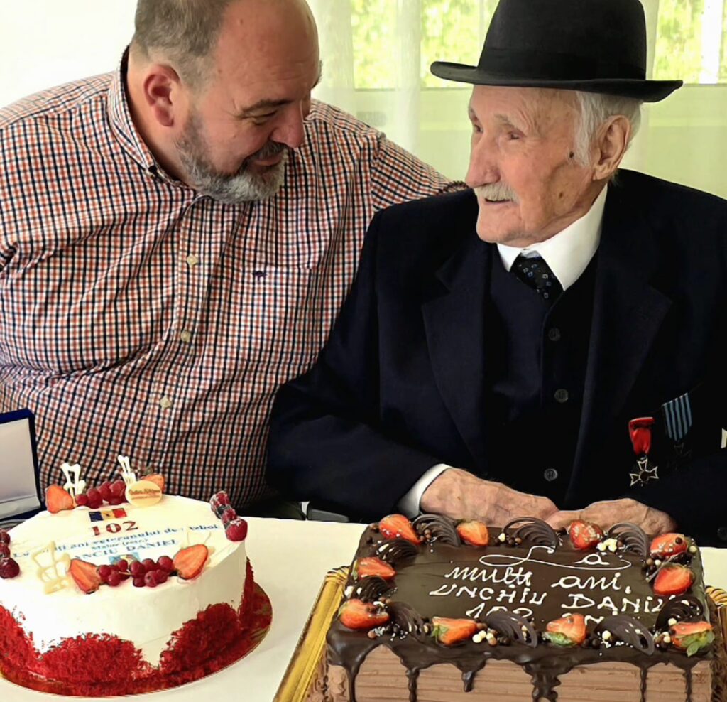 Momente încărcate de emoție la Sibiu: maiorul (în retragere) Danil Banciu, veteran al celui de-Al Doilea Război Mondial, și-a sărbătorit venerabila vârstă de 102 ani.