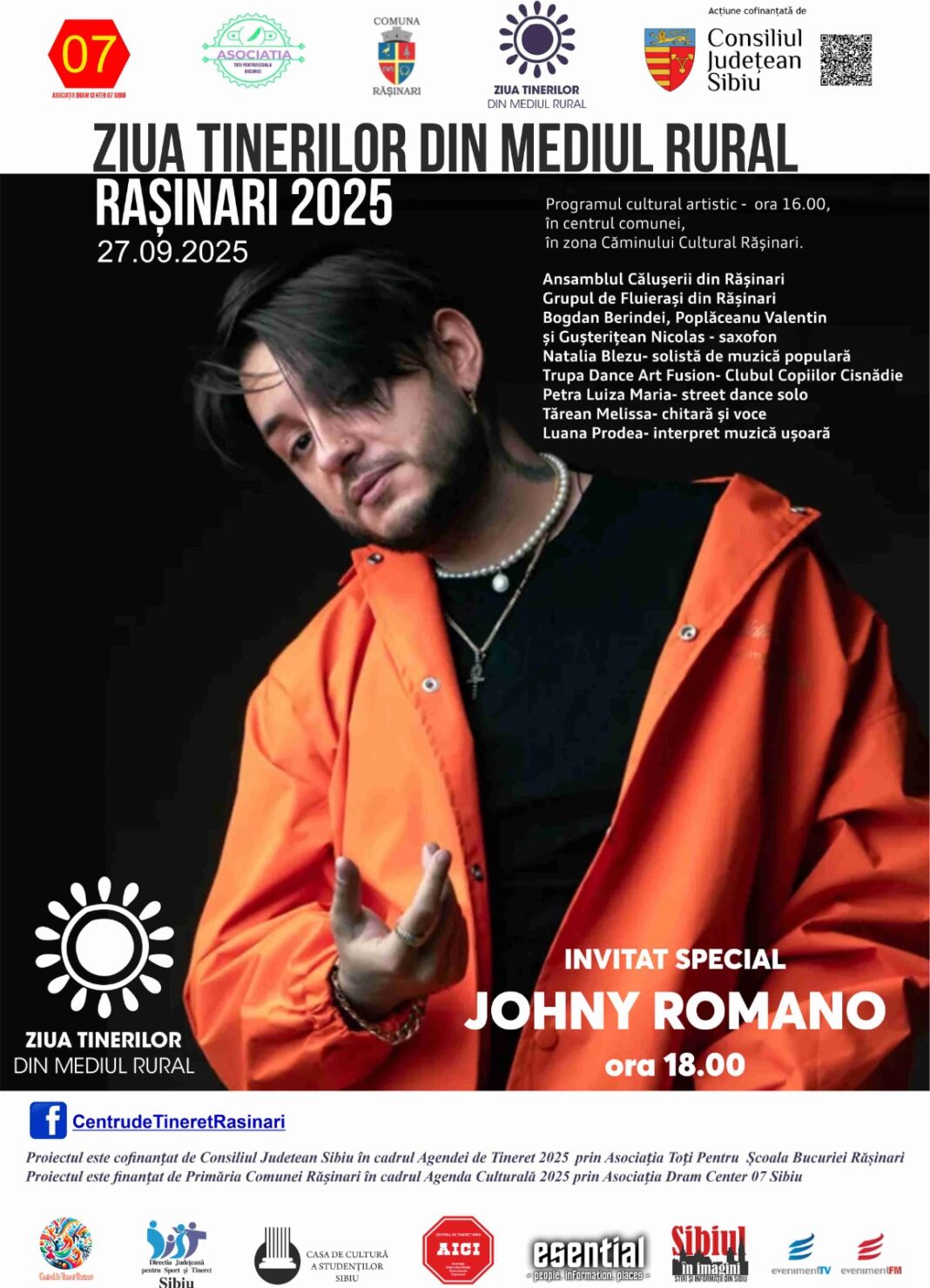 Comuna Rășinari va găzdui sâmbătă, 27 septembrie 2025, începând cu ora 16.00, Ziua Tinerilor din mediul rural – Rășinari 2025, un eveniment dedicat tinerilor și comunității locale. Manifestarea face parte din festivalul național „Ziua Tinerilor din Mediul Rural”, desfășurat în perioada 26–28 septembrie la nivel național, aflat la a treia ediție și organizat sub egida programului european European Youth Village.