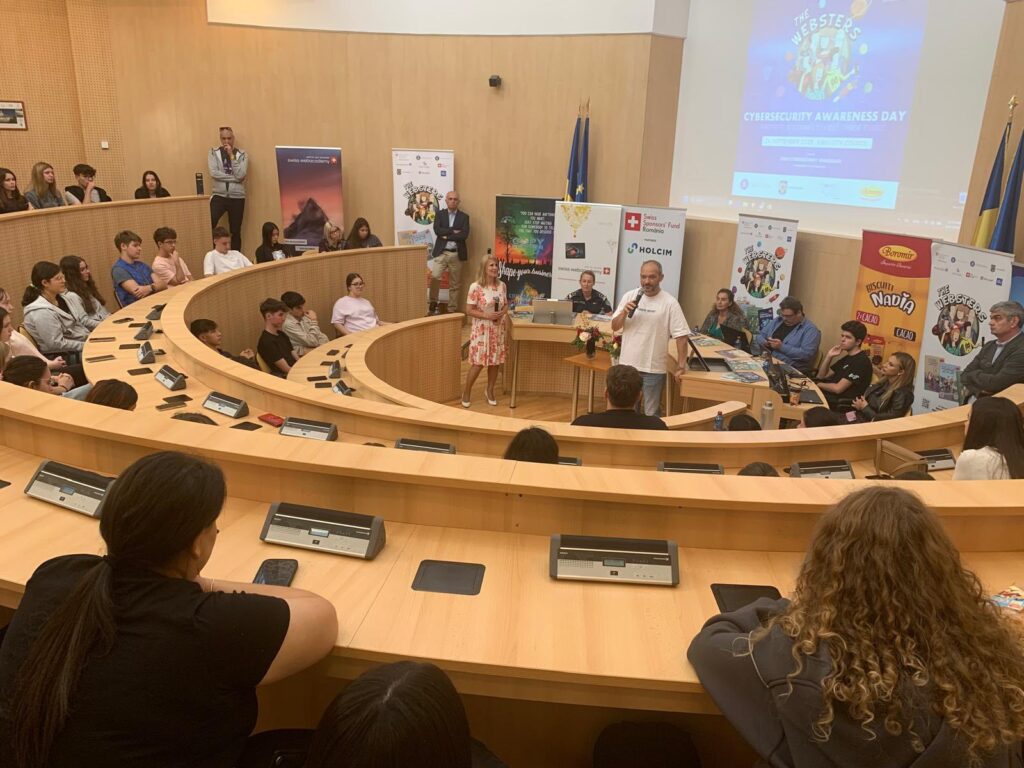 Sala de Ședințe a Consiliului Județean Sibiu a găzduit astăzi evenimentul „Cybersecurity Awareness Days”, la care au luat parte peste 500 de elevi din județ. Evenimentul a fost organizat de SWISS WEBACADEMY și Sibiu IT Cluster, cu sprijinul Ambasadei Elveției și al Consiliului Județean Sibiu, împreună cu parteneri importanți din domeniul IT.