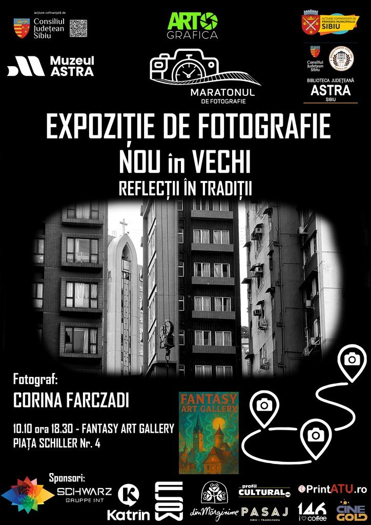 Asociația Artografica organizează în perioada 29 septembrie-10 octombrie, o serie de expoziții de fotografie găzduite în diferite spații din Sibiu. Evenimentele fac parte din proiectul cultural „Maratonul de Fotografie”, inclus pe agenda culturală a Primăriei Sibiu și a Consiliului Județean Sibiu.