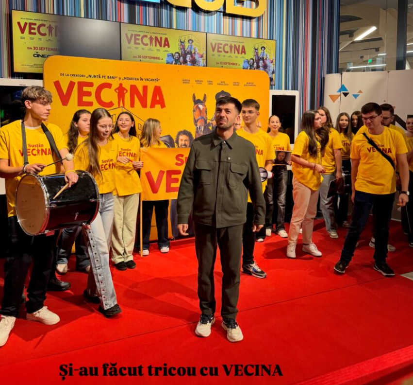 Ieri mult așteptatul film „Vecina” a avut premiera la Cine Gold Sibiu, unde Mircea Bravo și echipa sa au fost primiți cu entuziasm de public. Unii dintre spectatori au venit chiar cu tricouri și postere dedicate filmului, semn al nerăbdării cu care sibienii au așteptat această comedie inspirată din realitate.