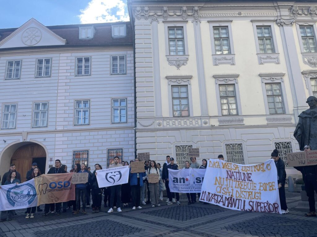 Astăzi în Sibiu, reprezentanții asociațiilor studențești CSE, ASLA, SOLIDUS, ASPS, BSPP, SSMH, OSD și OSF împreună cu studenții au organizat un protest pașnic, pornind în marș de pe Bulevardul Nicolae Bălcescu până în Piața Mare. Scandările lor au atras atenția trecătorilor, mesajele fiind îndreptate împotriva situației burselor și a lipsei de sprijin real pentru educație.