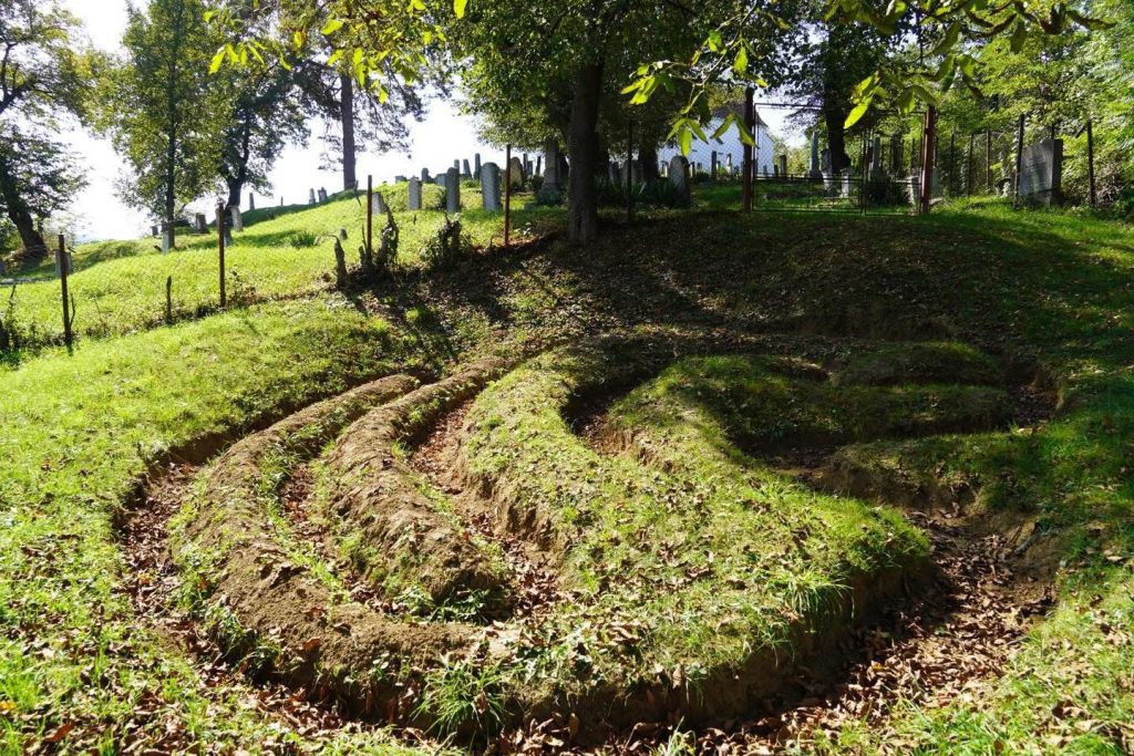 Toamna a debutat blând, iar de prin gospodării auzi oamenii trebăluind în grădini sau tăind lemnele pentru iarnă. Un șir de copaci separă satul de cimitir și biserică, asemenea unui hotar verde crescut între viață și moarte. Cu acest gând am ajuns la poarta cimitirului, loc în care cu sute de ani în urmă sașii au săpat șanțuri sub forma unui labirint: „Atunci când murea un tânăr necăsătorit, corpul îi era purtat prin labirint înainte de a fi îngropat. Se spune că sufletul acestuia nu și-ar mai fi găsit drumul către pământ și astfel ar fi rămas în Rai”, explică Susana Schoffend.