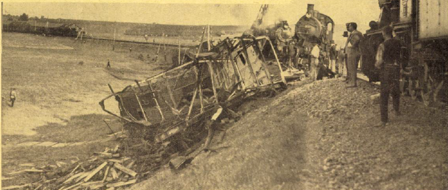 „Trenul, era compus din 9 vagoane clasă şi 1 vagon de manipulație, având mecanic pe Gârneală Marin, fochist Ciobanu şi şef de tren pe C. Petrescu. Din pricina traverselor putrede, pe când trenul avea o viteză de aproape 69 km pe oră, locomotiva şi vagonul de manipulate au sărit de pe linie, mergând târâş 60 m. unde ajungând un podeţ, s’au răsturnat în râpă, avariindu-se. Ggraţie ruperii cârligului de tracţiune — numai 3 au căzut pe partea cealaltă” notează ziarul Curentul.