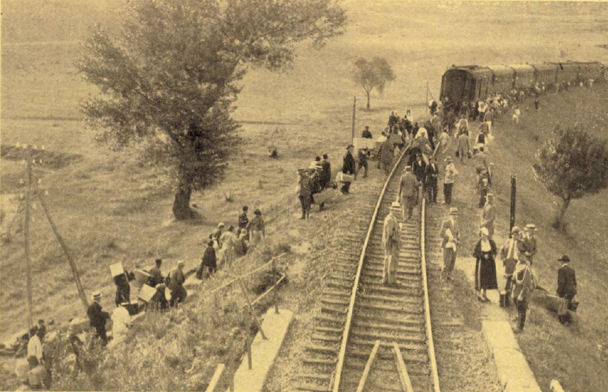 „Transbordarea pasagerilor pe linia întreruptă” și „Lucrările de curățire a liniei”, imagini tulburătoare ale epocii.