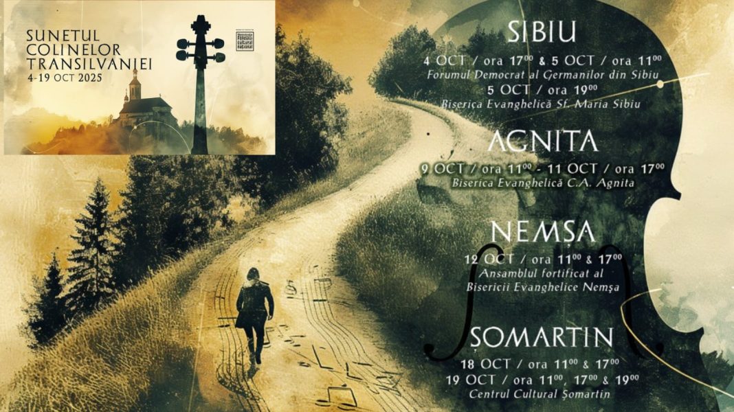 După un debut de succes la Sibiu, proiectul „Sunetul Colinelor Transilvaniei” continuă în luna octombrie seria de concerte în comunități din județ, ducând muzica acolo unde cultura ajunge mai rar. În următoarele două weekenduri, Agnita, Nemșa și Șomartin vor găzdui spectacole ce îmbină jazzul, muzica clasică și tradițiile locale, transformând bisericile fortificate și casele de cultură în adevărate scene ale emoției.