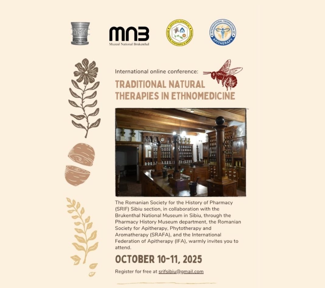 Societatea Română de Istoria Farmaciei (SRIF) – secția Sibiu, Muzeul Național Brukenthal din Sibiu prin intermediul compartimentului Muzeul de Istoria Farmaciei, Societatea Română de Apiterapie, Fitoterapie și Aromaterapie (SRAFA) și Federația Internațională de Apiterapie (IFA) organizează, în perioada 10–11 octombrie 2025, conferința internațională online „Terapii naturale tradiționale în etnomedicină”.