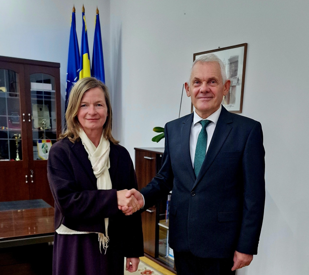 Prefectul județului Sibiu, Mircea-Dorin Crețu, a primit ieri o vizită de curtoazie din partea Consului Republicii Federale Germania, Wiebke Oeser. Aceasta s-a aflat în prima sa vizită la Instituția Prefectului-Județul Sibiu de la preluarea mandatului.