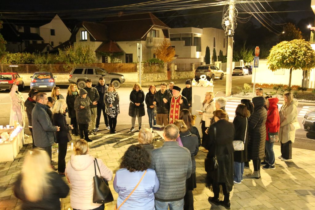 În curtea clinicii decorate frumos, fiecare lumânare a purtat un nume, o poveste și un dor. Ursuleții de pluș au fost așezați cu grijă de către părinți lângă lumânări, iar fiecare părinte a primit din partea organizatoarei un bilețel cu un mesaj scris „de la îngeri”, un semn de mângâiere și speranță. Atmosfera a fost frumoasă, dar și tristă, o combinație rară între liniște sufletească și durere. Vă mărturisesc că m-am pus pentru câteva secunde în locul lor și le-am simțit durerea, dar la final am înțeles că lacrimile lor nu înseamnă slăbiciune, ci putere și vindecare. Momentul de comemorare a fost completat de o slujbă în memoria micilor suflețele.
