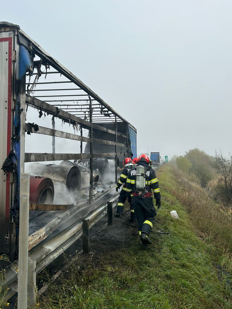 Incendiul a afectat remorca autocamionului, care a ars în totalitate, inclusiv încărcătura – bobine de tablă. Capul tractor a fost decuplat la timp și nu a fost cuprins de flăcări.