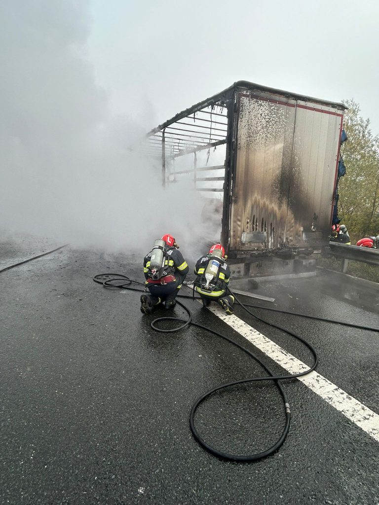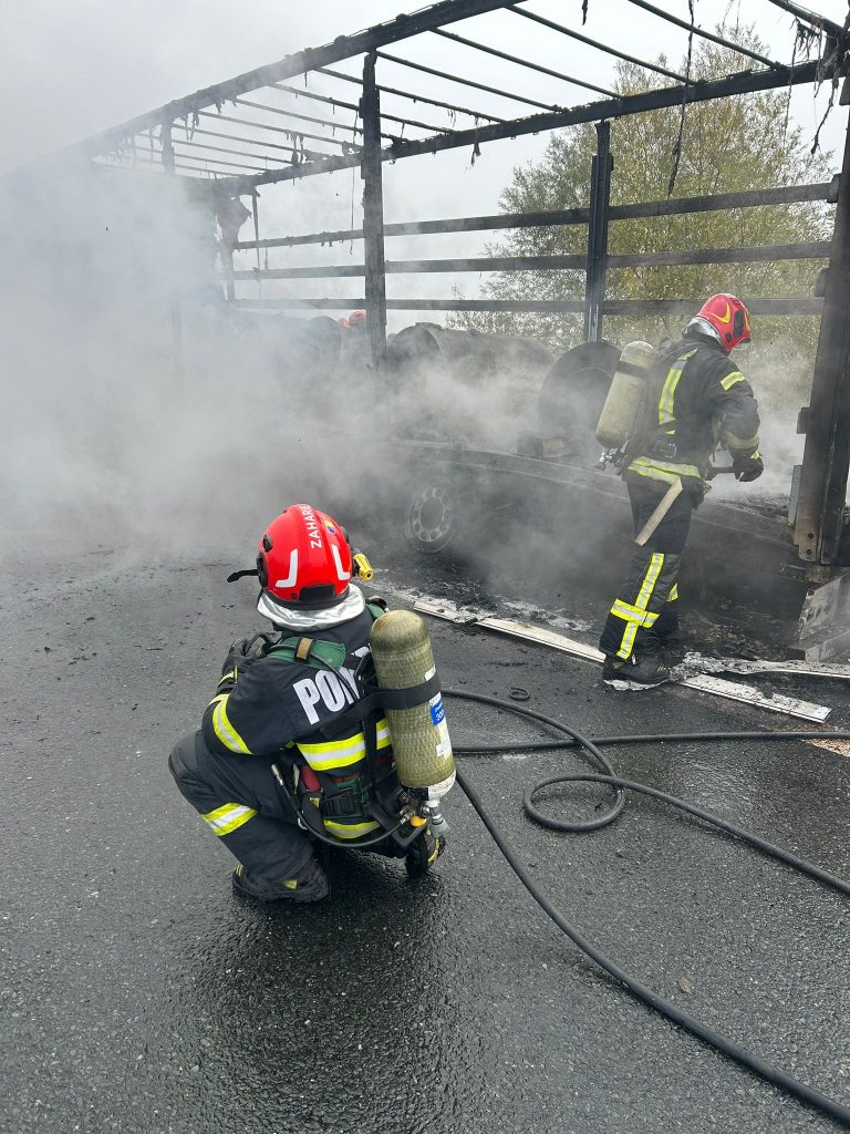 Din fericire, nu s-au înregistrat victime. Potrivit primelor informații, cauza probabilă a incendiului ar fi efectul termic produs în urma frecării la una din roțile remorcii autocamionului.