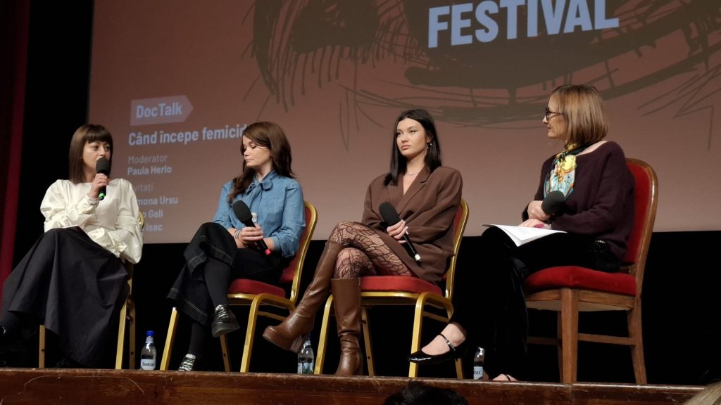 După proiecție, discuția a continuat în cadrul unui DocTalk moderat de Paula Herlo (jurnalist), cu invitații Erika Isac (artist), Ramona Ursu (jurnalist) și Eniko Gall, psiholog în cadrul Asociației A.L.E.G. din Sibiu. Titlul conversației – „Când începe femicidul?” – a devenit un punct de pornire pentru reflecții despre violența de gen, educație, rușine și schimbare.