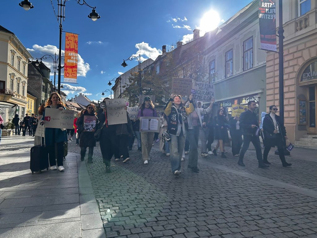 Mesaje puternice, pași hotărâți și emoție colectivă, au fost astăzi la Marșul „Împreună pentru Siguranța Femeilor”. Marșul s-a desfășurat simultan în 10 orașe din țară, organizat la nivel național de Centrul FILIA, iar la Sibiu organizat de Asociația A.L.E.G. Zeci de persoane au mărșăluit din Bulevardul Nicolae Bălcescu până în Piața Mare și înapoi, cerând măsuri mai ferme împotriva violenței de gen.