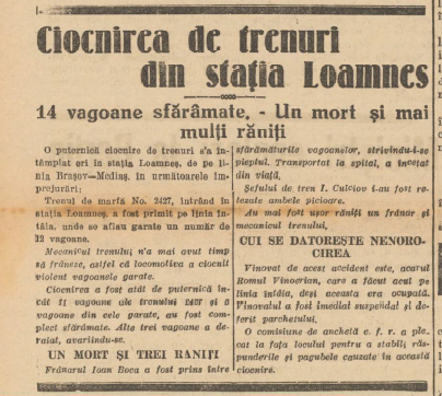 În zorii zilei de 28 iulie 1931, liniștea dealurilor de la Loamneș a fost sfâșiată de zgomotul metalic al fierului contorsionat. În mica stație dintre Copșa Mică și Sibiu, două trenuri s-au ciocnit violent, lăsând în urmă un peisaj apocaliptic: vagoane sfărâmate, fum dens și țipetele celor prinși între fiare. A fost unul dintre cele mai grave accidente feroviare ale începutului de secol XX în Transilvania.