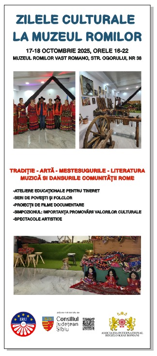 În perioada 17-18 octombrie, Muzeul Romilor a fost gazda unui eveniment deosebit: Zilele Culturale la Muzeul Romilor, o manifestare dedicată promovării culturii, tradițiilor și talentelor rome. Evenimentul, care a fost confinanțat de Consiliul Județean Sibiu, s-a bucurat de o participare numeroasă și entuziastă, adunând laolaltă copii, tineri și adulți dornici să redescopere valorile autentice ale acestei comunități.