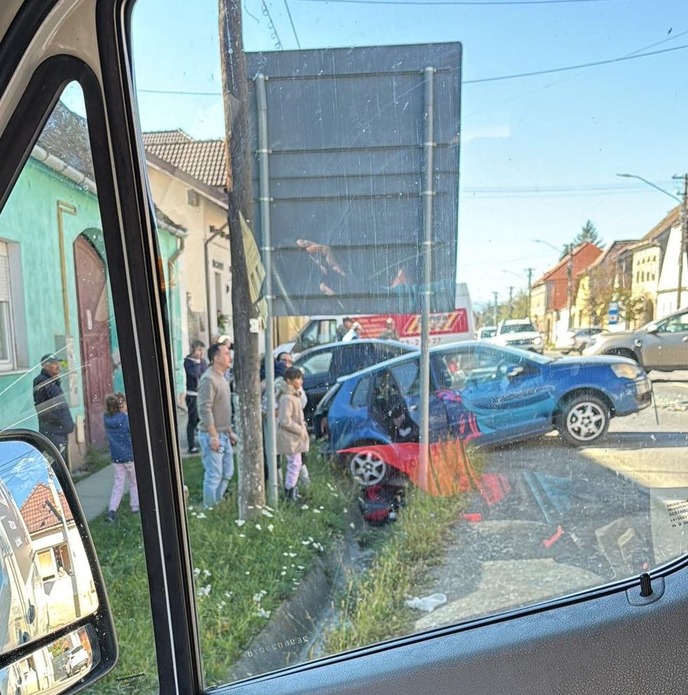 Două mașini au fost implicate într-un accident rutier produs la Șura Mare. Victimele primesc îngrijiri medicale din partea medicilor veniți la fața locului.