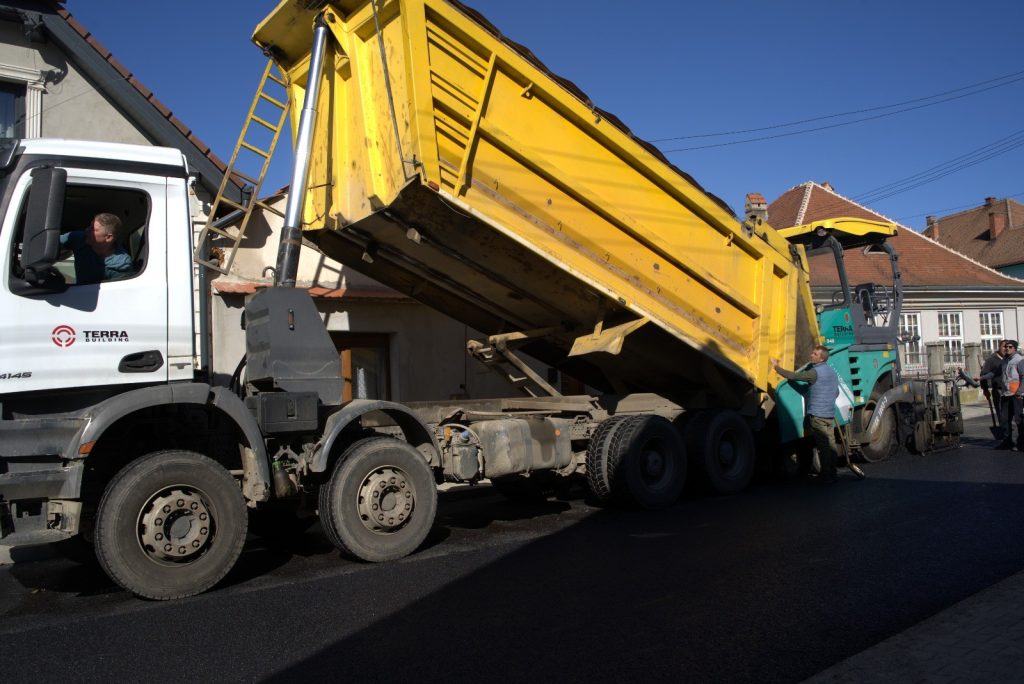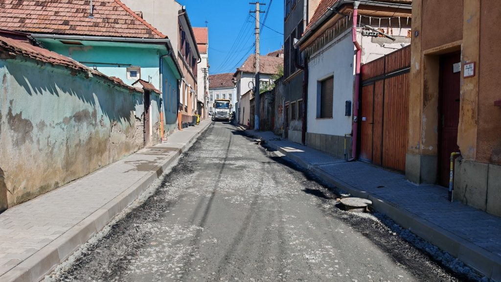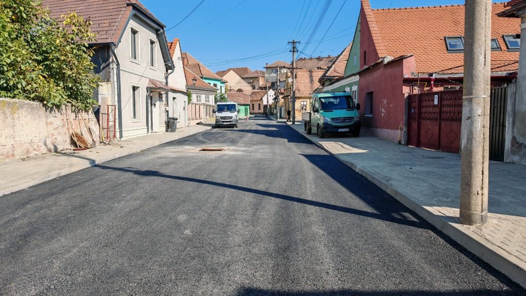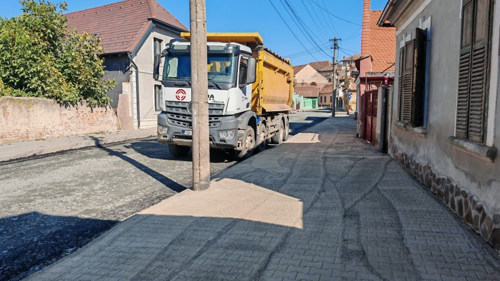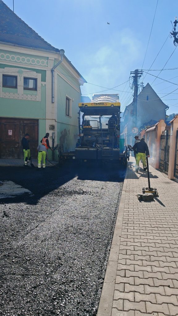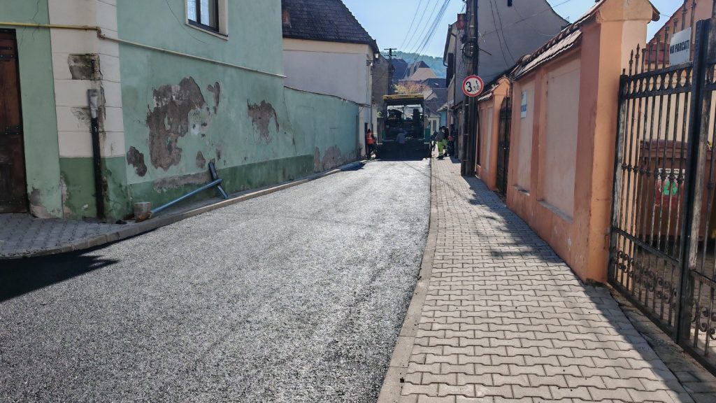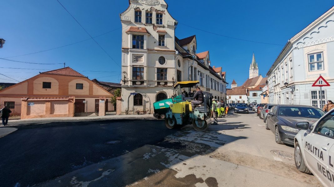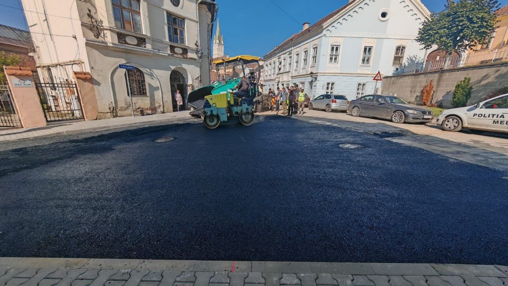 După finalizarea lucrărilor la infrastructura subterană, Primăria Municipiului Mediaș a demarat lucrările de amenajare a trotuarelor și reparațiile la sistemul rutier, care au inclus egalizarea cu binder și turnarea unui covor asfaltic nou.