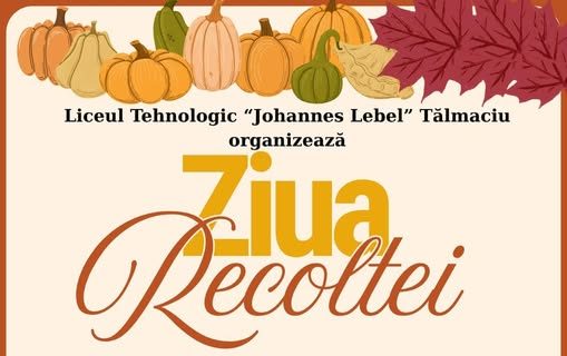 Liceul Tehnologic „Johannes Lebel” din Tălmaciu organizează Ziua Recoltei, un eveniment dedicat toamnei și tradițiilor locale. Manifestarea va avea loc vineri, 24 octombrie, de la ora 12:00, pe strada Nicolae Bălcescu, în zona Bisericii și a Școlii Gimnaziale.