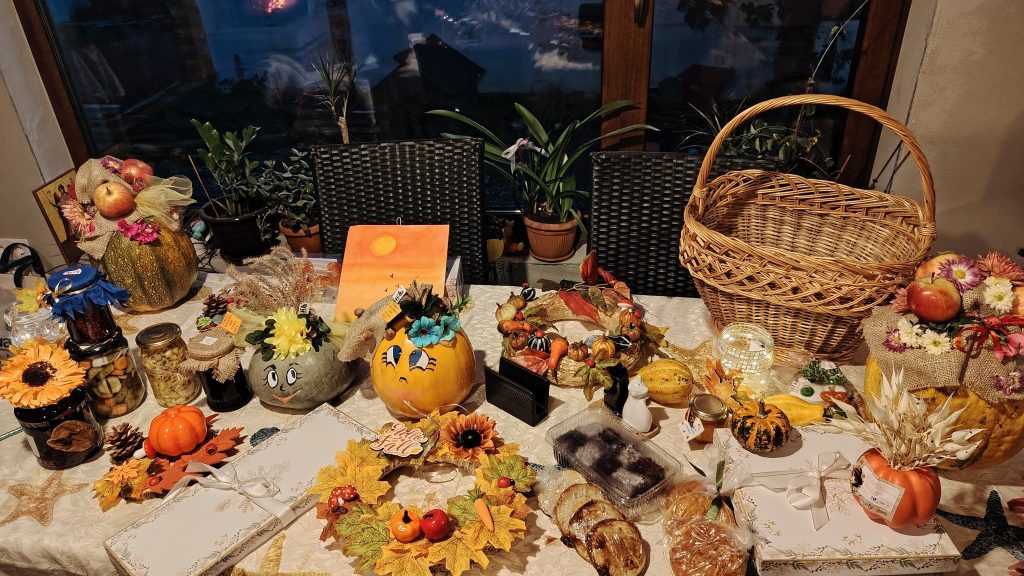 Pe lângă produsele alimentare, târgul a fost decorat cu dovleci colorați, flori și diverse obiecte specifice sezonului, creând o atmosferă caldă și plină de culoare.