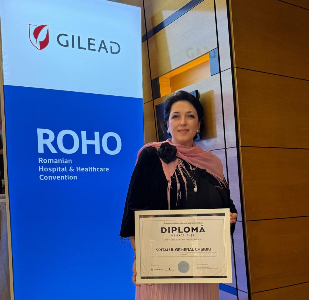 Spitalul General CF Sibiu a fost recunoscut pentru performanțele sale în domeniul medical, obținând Diploma de Excelență în cadrul Galei Romanian Healthcare Awards 2025, la categoria „Proiectul de cercetare al anului”. Instituția a fost reprezentată la eveniment de Daniela Meițescu, care a primit diploma în numele întregii echipe.