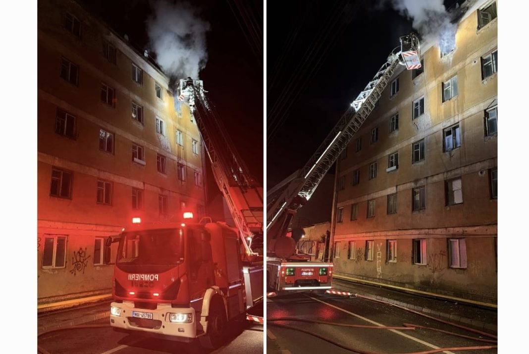 Pompierii sibieni au intervenit azi-noapte pe strada Abatorului din Sibiu pentru stingerea unui incendiu izbucnit la ultimul etaj al unei clădiri dezafectate. La fața locului au acționat două autospeciale de stingere, o autoscară și un echipaj SMURD.