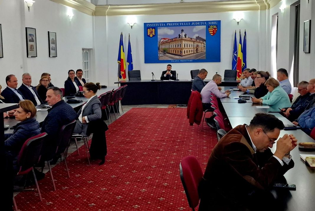 Colegiul Prefectural s-a reunit astăzi la ședința lunară, prezidată de subprefectul Florian Giubega și secretarul general Marius Oltean. Tema principală a fost „Influența digitalizării asupra locurilor de muncă sigure și sănătoase”, prezentată de inspectorul de muncă Ciprian Telea, din cadrul Serviciului Sănătate și Securitate în Muncă al ITM Sibiu.