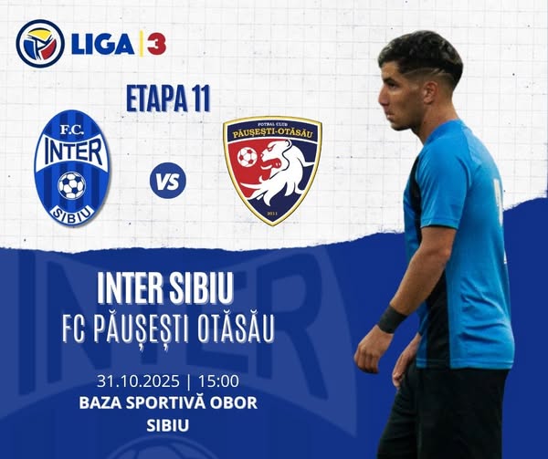 ACS Mediaș și Inter Sibiu vor juca vineri în etapa a 11-a a Ligii a treia de fotbal, seria a șasea.