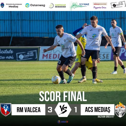 Mediașenii au continuat să lupte și au redus din diferență în minutul 81, prin Răzvan Greu, care a stabilit scorul final: 3-1 pentru SCM Râmnicu Vâlcea.