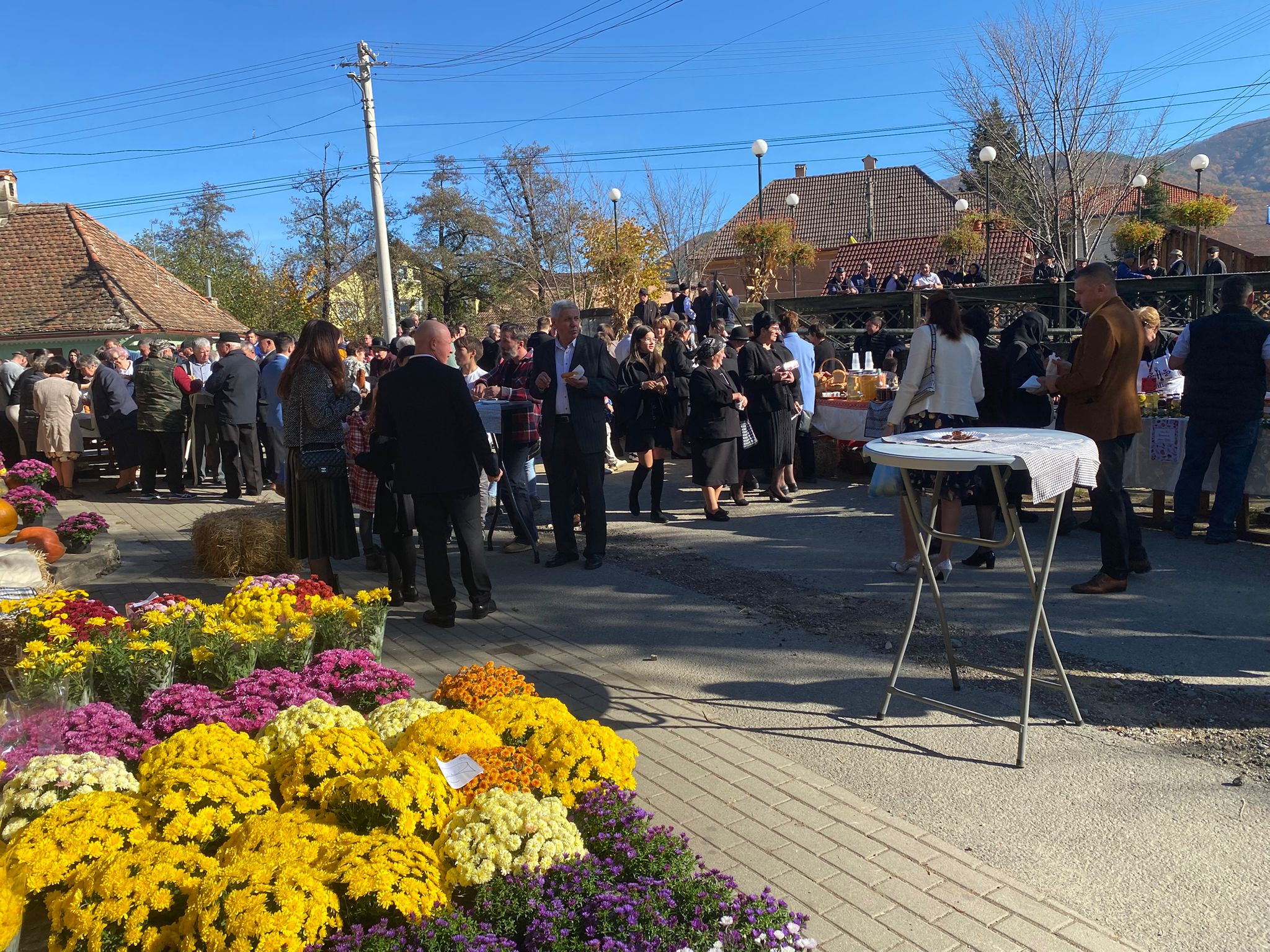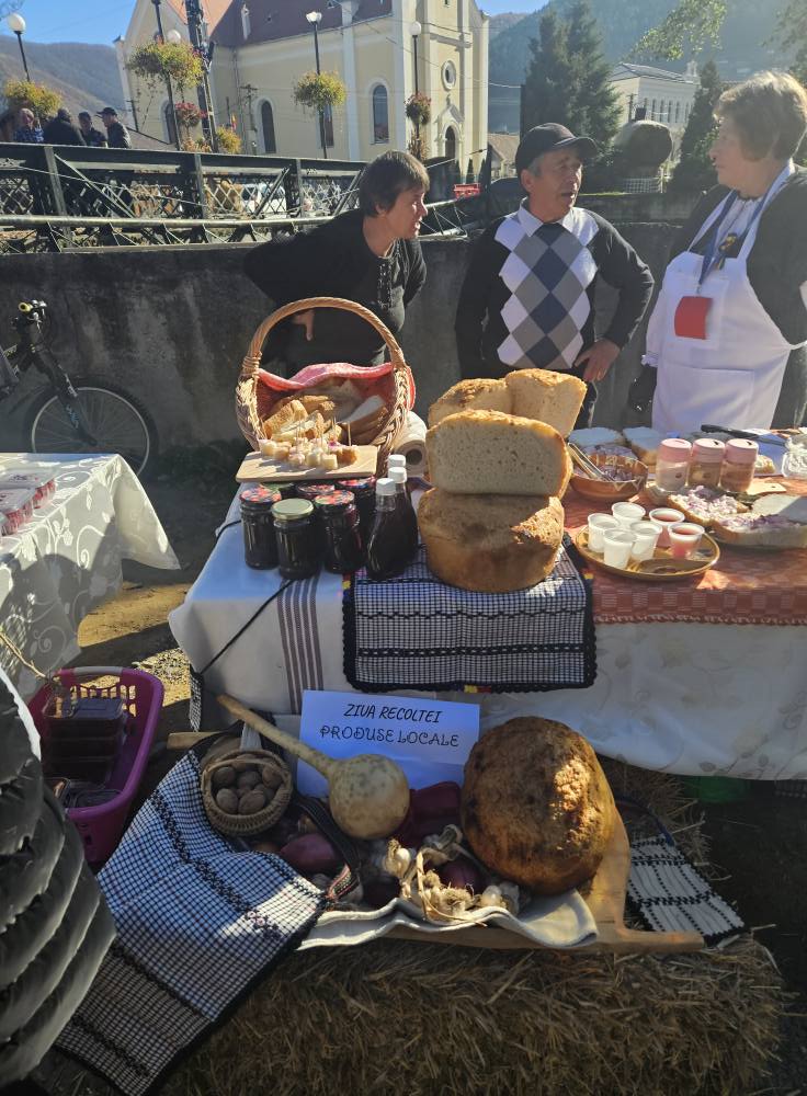 Pe mesele frumos aranjate s-au regăsit pâine de casă rumenă, murături crocante, mere parfumate, plăcinte aburinde, legume proaspete, brânzeturi tradiționale și borcane de miere aurie, alături de aranjamente florale și decorațiuni originale din căpițe de fân, lemn și dovleci. Vizitatorii au putut gusta, admira și cumpăra produse tradiționale, într-o atmosferă caldă și plină de voie bună.