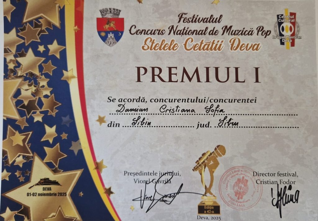 Într-o competiție strălucitoare a talentelor din întreaga țară, sibianca Cristiana Damian a reușit performanța remarcabilă de a câștiga Premiul I la cea de-a 42-a ediție a Concursului Național de Muzică Pop „Stelele Cetății”.