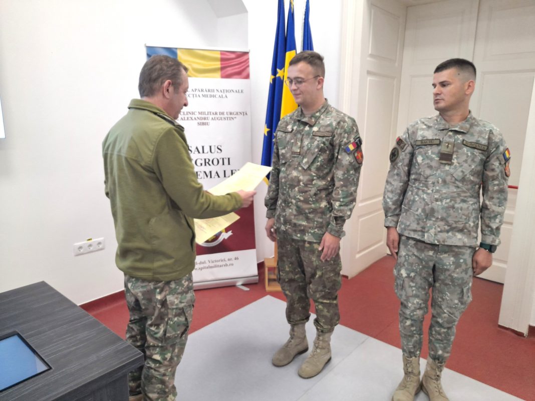 În semn de apreciere a profesionalismului și devotamentului dovedite în îndeplinirea cu succes a misiunilor specifice, două cadre medicale militare din cadrul Spitalului Clinic Militar de Urgență „Dr. Alexandru Augustin” Sibiu au fost distinse vineri, 7 noiembrie, cu Emblema de Onoare a Medicinei Militare.