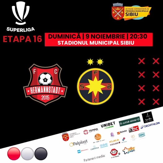 Meci de interes duminică seara pe Stadionul Municipal din Sibiu. FC Hermannstadt primește replica campioanei României, FCSB. Partida va începe la ora 20.30.