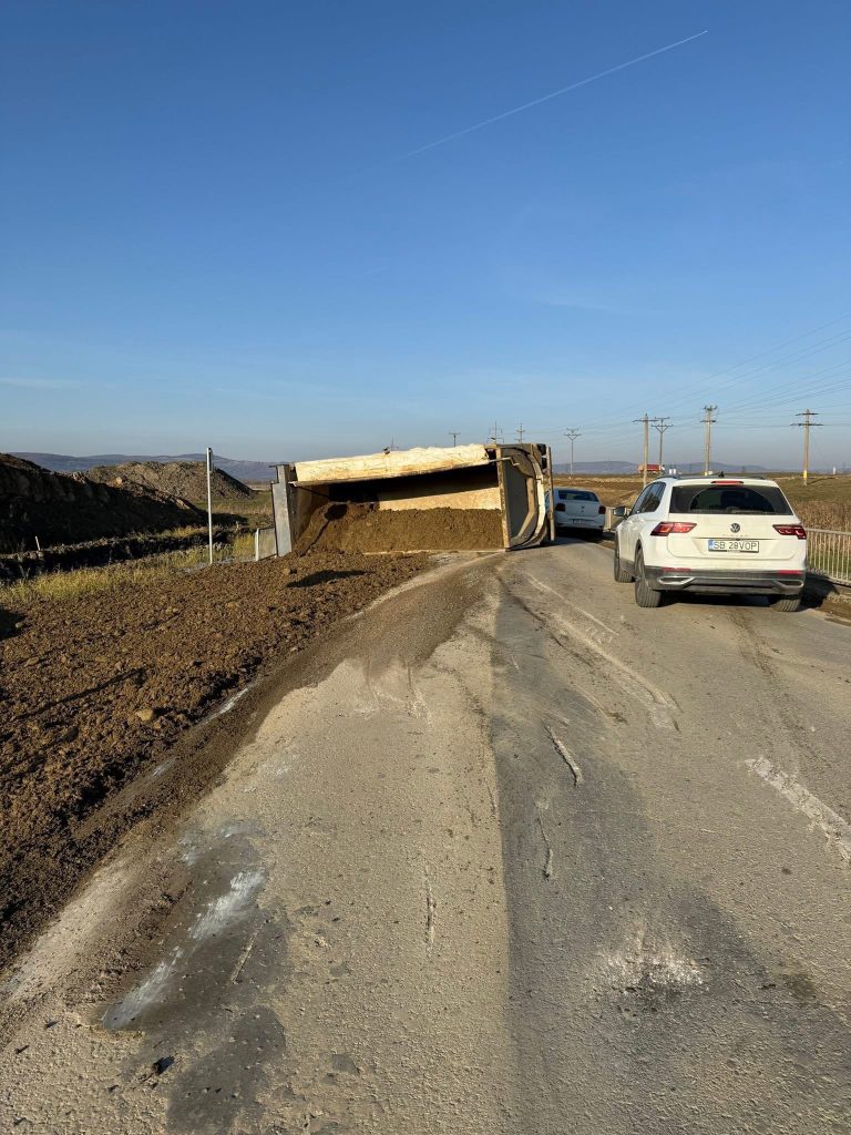 Potrivit primelor cercetări, un bărbat de 48 de ani din Tălmaciu, aflat la volanul unei autobasculante care se deplasa pe direcția Mârșa – Avrig, a pierdut controlul asupra direcției de mers, vehiculul răsturnându-se pe carosabil.