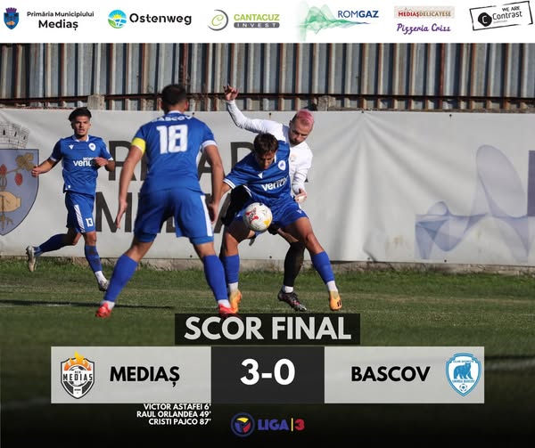 ACS Mediaș s-a impus clar pe teren propriu în etapa a 13-a a Ligii a III-a, seria a VI-a, în fața formației Unirea Bascov, scor 3-0.