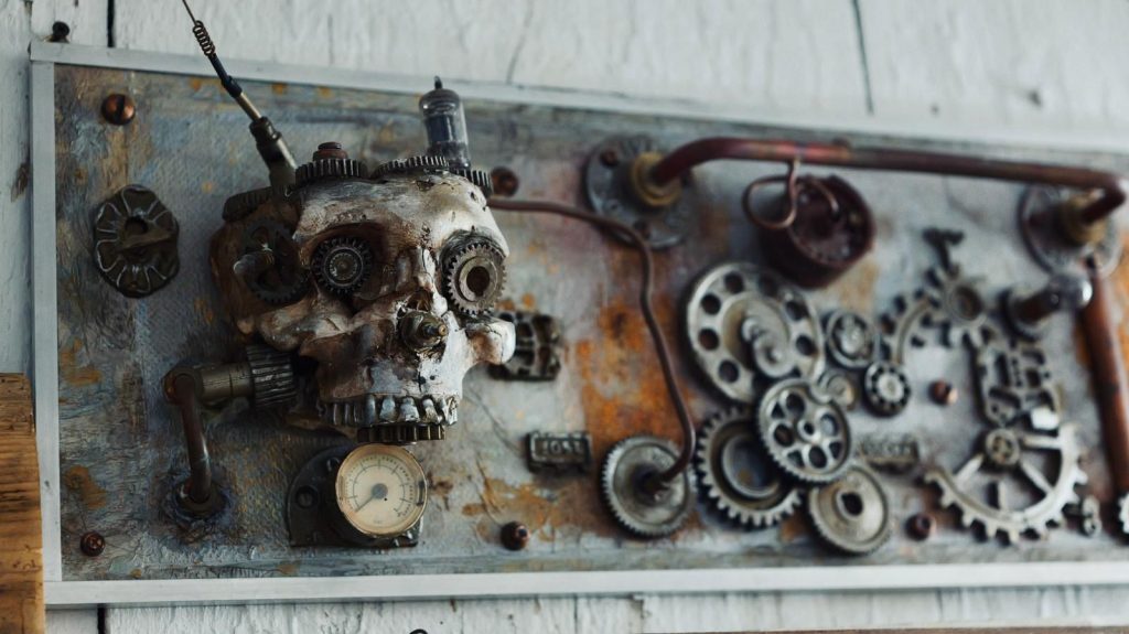 Gabriel Tibori, recunoscut pentru instalațiile sale, a strâns o colecție impresionantă în galerie: craniu sculptat realist, împodobit cu rotițe , oferind un decor cu aspect mecanic, De asemenea, un craniu îmbrăcat în trandafiri, chitare modificate, tablouri cu cranii ieșite în relief.