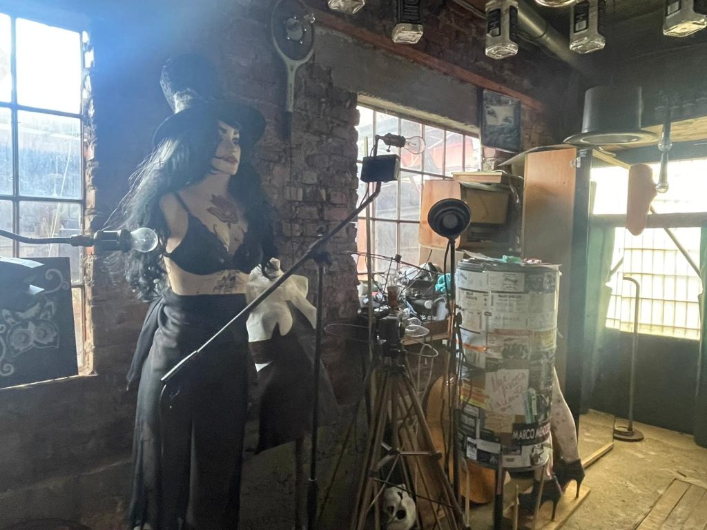 Am avut ocazia să îi vedem și atelierul, spațiul unde creația este la ea acasă! Am descoperit mai multe instalații sub tot felul de forme, chiar și o „Amy Winehouse” reinterpretată.