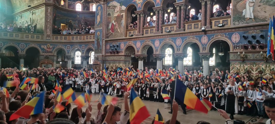 Sute de elevi au cântat la unison cântece patriotice, într-o manifestare dedicată în întregime Zilei Naționale a României.