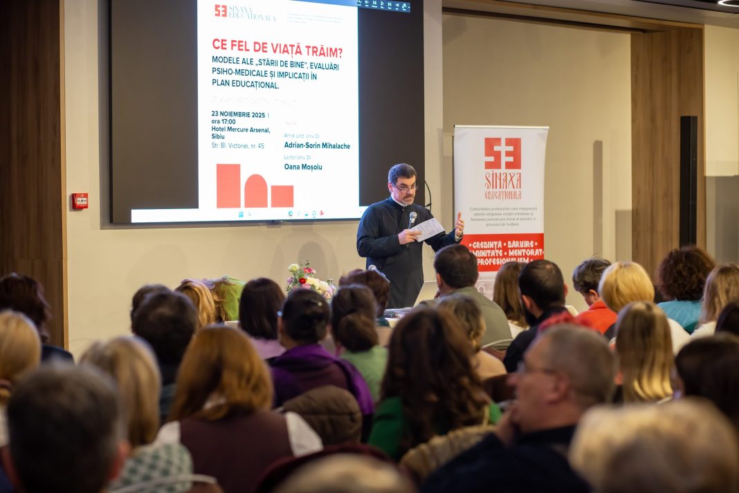 Peste 300 de profesori din județul Sibiu, alături de cadre didactice din alte zone ale țării, s-au reunit duminică, 23 noiembrie, la Hotelul Mercure Arsenal, la conferința „Ce fel de viață trăim? Modele ale stării de bine. Evaluări psiho-medicale și implicații în plan educațional”. Evenimentul a fost organizat de Asociația „Sinaxa Educațională”, o comunitate profesională care integrează valorile ortodoxe și preocuparea pentru formarea caracterului moral al elevilor.