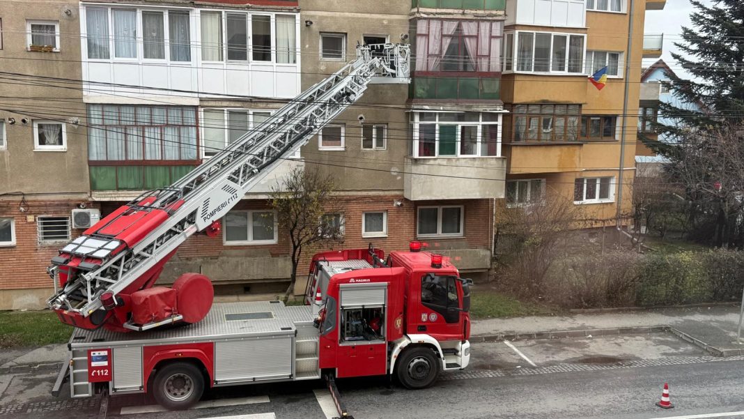Pompierii au intervenit pe strada Vasila Aaron din Sibiu la etajul 2 a unui bloc