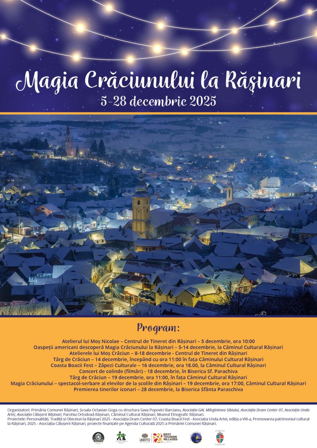 Seria de activități este organizată de Primăria Comunei Rășinari, în parteneriat cu școli, asociații culturale și instituții locale, fiind cofinanțată de Consiliul Județean Sibiu prin Agenda Culturală 2025 și de Primăria Rășinari. Organizatorii își propun să ofere comunității momente de bucurie și tradiție, într-o perioadă în care spiritul Crăciunului aduce oamenii împreună.