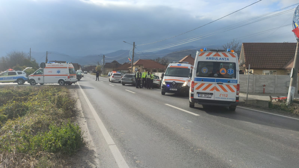 Un accident rutier s-a petrecut astăzi în orașul Tălmaciu, în care două autoturisme s-au izbit violent pe DN7, chiar la intersecția cu strada Lucian Blaga. Serviciul de Ambulanță Județean Sibiu a trimis de urgență trei autosanitare la fața locului.