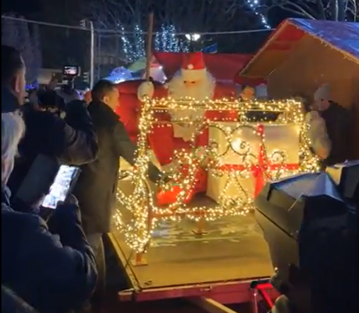 Pentru cei mici, bucuria a fost completă cu Moș Crăciun care a sosit cu sania trasă de un ATV condus chiar de primarul Ioan Oancea. Cei doi au venit cu sacul plin de daruri pentru cei mici.