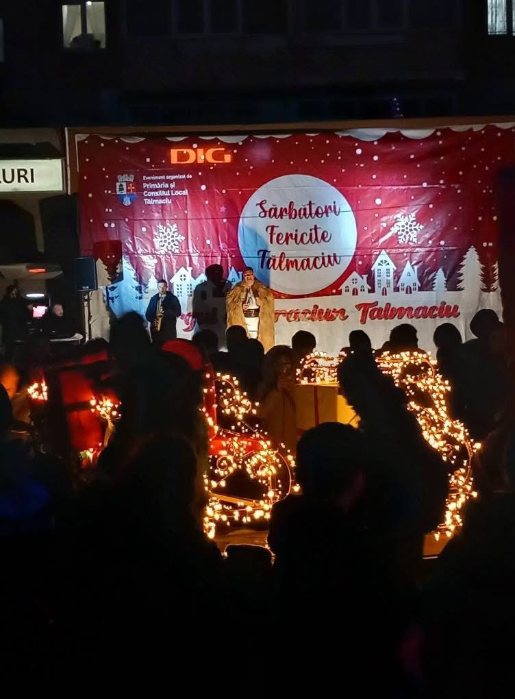 Tălmaciu a intrat oficial în atmosfera sărbătorilor de iarnă odată cu deschiderea Târgului de Crăciun, care a avut loc ieri seară în centrul orașului. Mii de lumini, colinde, artiști invitați și multă veselie au transformat seara într-una de poveste, pentru cei mici și cei mari.