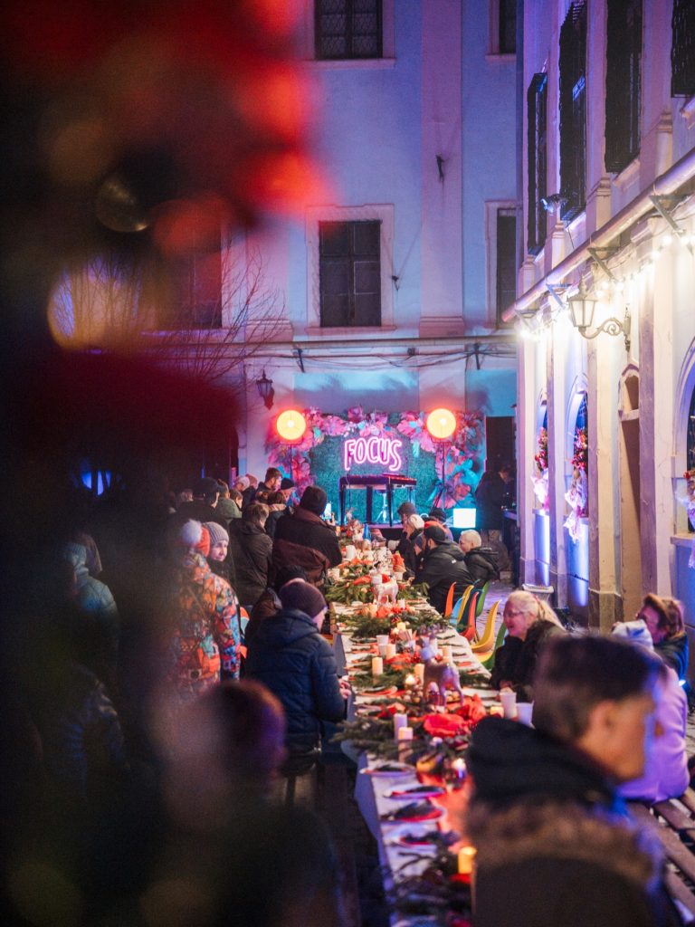Curtea interioară a Muzeului Național Brukenthal a prins din nou viață weekendul trecut, la primul Community Dinner al sezonului. Sute de oameni au transformat spațiul într-un loc cald, relaxat și plin de conversații frumoase. Lumina, muzica live, mesele pline și atmosfera prietenoasă au făcut ca seara să fie una dintre cele mai reușite întâlniri comunitare din acest an.
